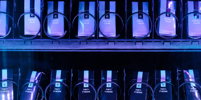 When users purchase an NFT from the vending machine, it dispenses a box with a unique code inside it for the chosen NFT, which is redeemable on the Neon platform.